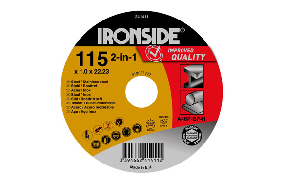 Disco corte 2 en 1 para metal y acero inox DISC1040 DISCO CORTE 2 EN 1 PARA METAL Y ACERO INOX Ø 115 X 2,5 X 22 MM