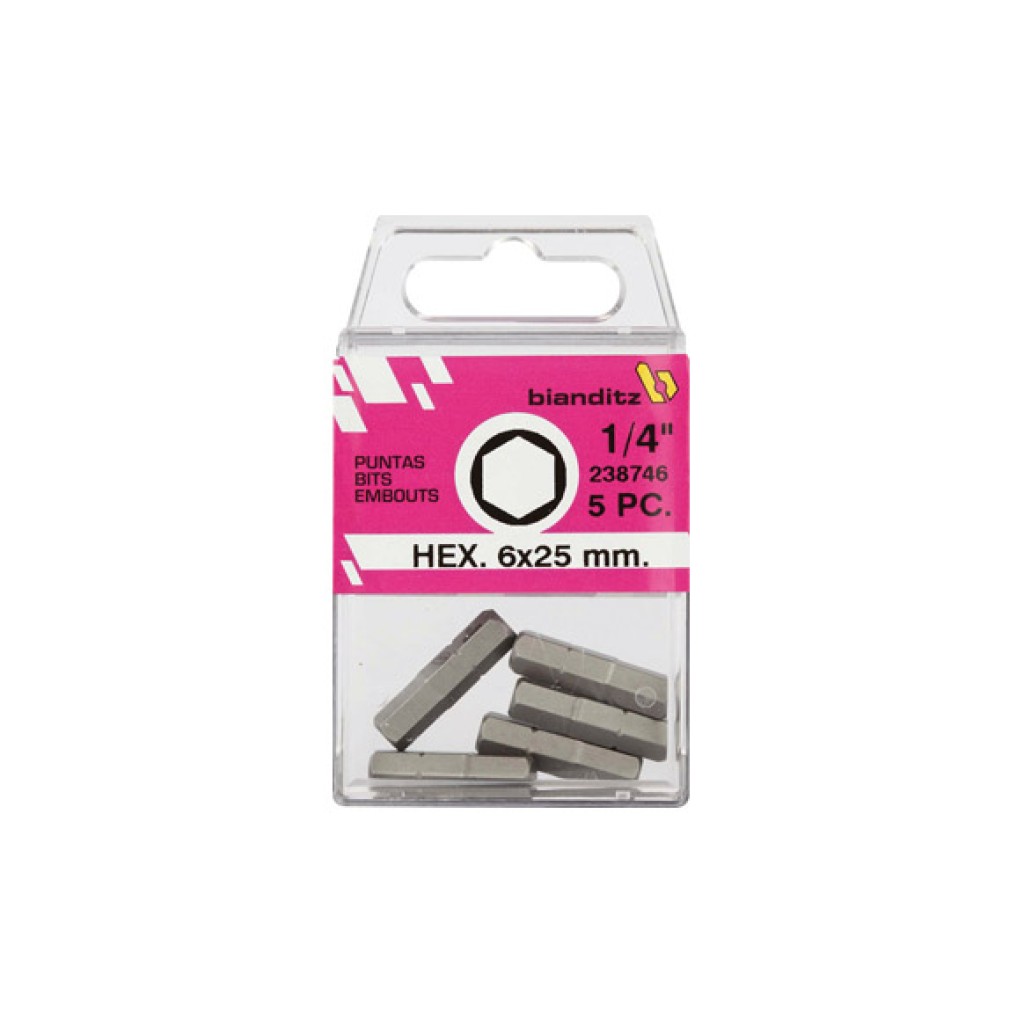 PUNTA ATORNILLAR HEXAGONAL 1/4 5 UDS 2,5 X 25 MM 238742
