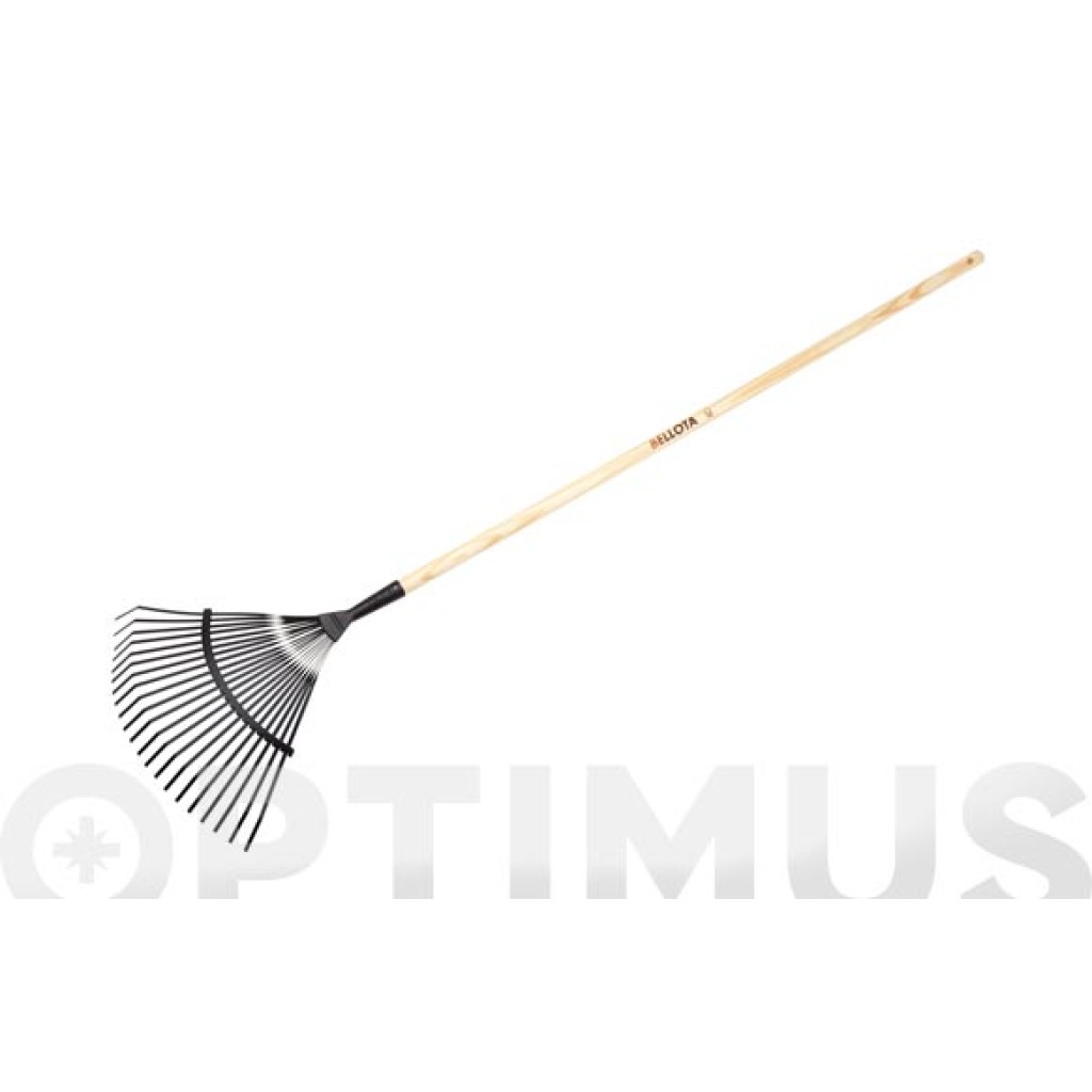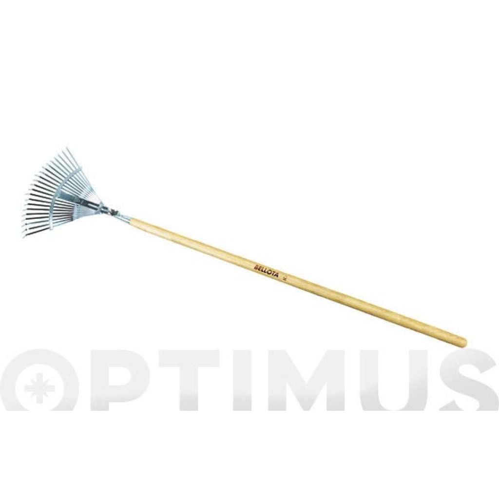 ESCOBA RECOGEHOJAS METALICA 21 DIENTES PLANOS 47 X 33 CM MANGO DE MADERA 5024