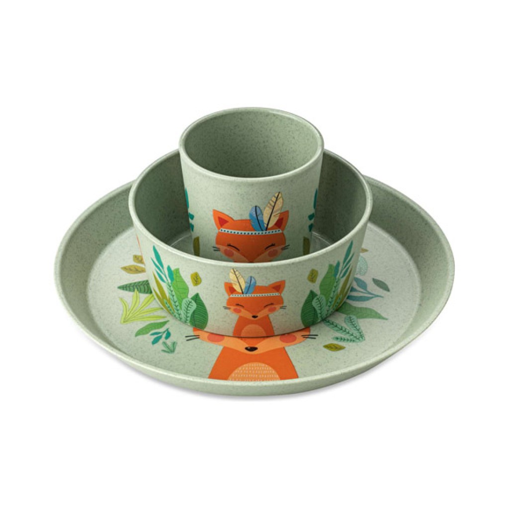Vajilla infantil organica set 3 pzas VAJI0409 VAJILLA INFANTIL ORGANICA SET 3 PZAS ZORRILLO VERDE